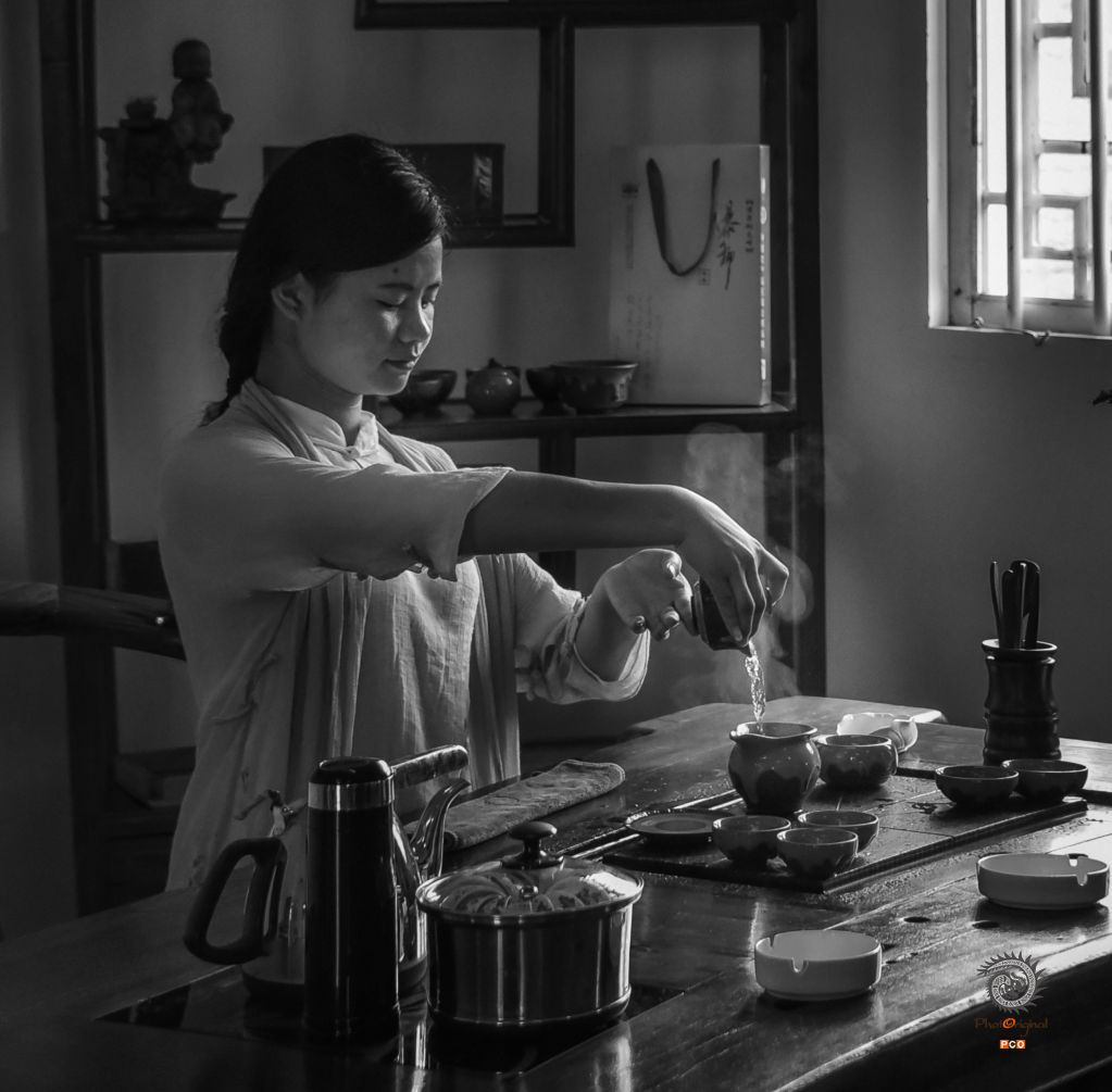 拍摄时间:2018年4月28日,安顺市紫云县鸡场茶场。 茶场工作人在作茶艺表演和介绍。