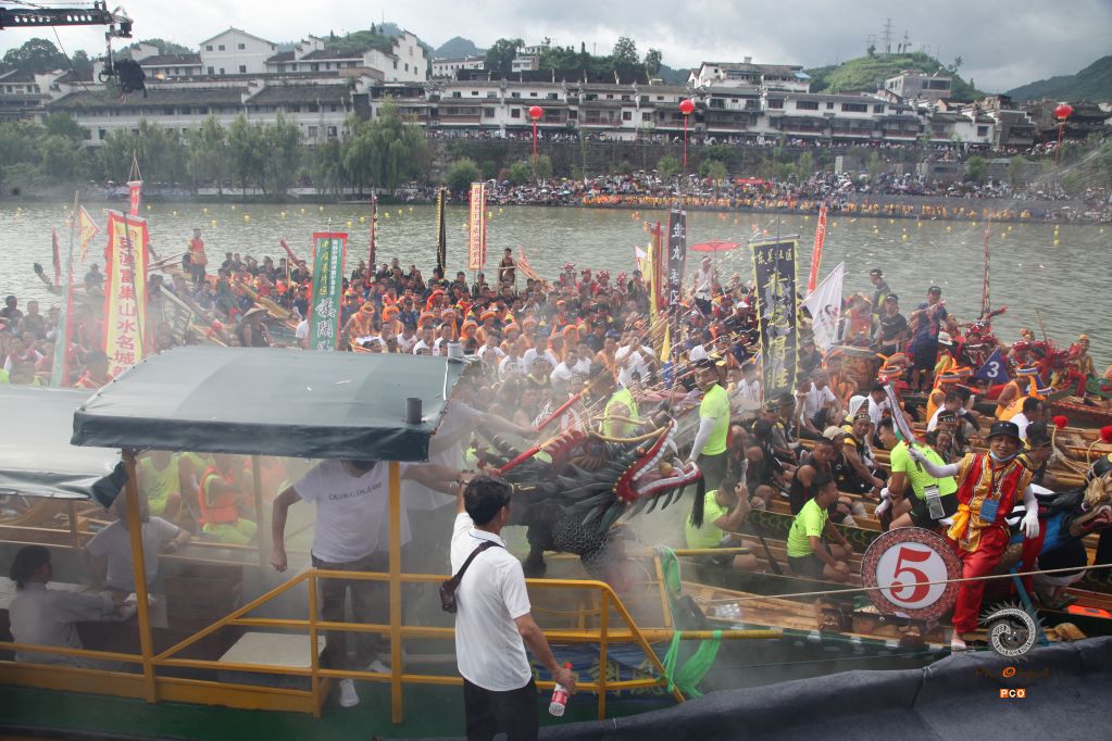 镇远赛龙舟是国家级非物质文化遗产,图为2021年赛龙舟,开幕式上,主席台前龙舟云集盛况。