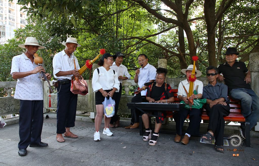 摄于贵州省安顺市。恰逢好天气,老人们又聚在市区广场一角,用芦笙、葫芦丝和电子琴等乐器共同演奏耳熟能详的红歌,歌颂共产党,唱响新时代。