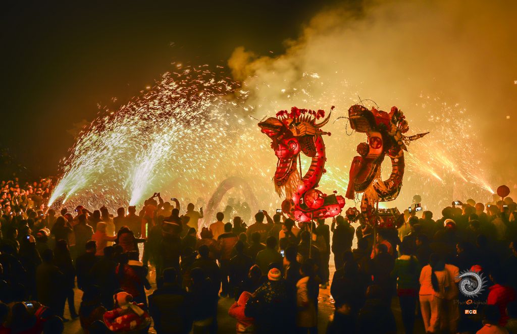 作品摄于贵州省瓮安县猴场。 猴场火龙是瓮安的非物质文化遗产,分布在草塘周边各村寨,如陈家湾、下司、新川、甘巴寨等,但主要以草塘四大街为主,每年正月初九至正月十五,草塘都要开展玩龙灯活动,祈求来年风调雨顺。