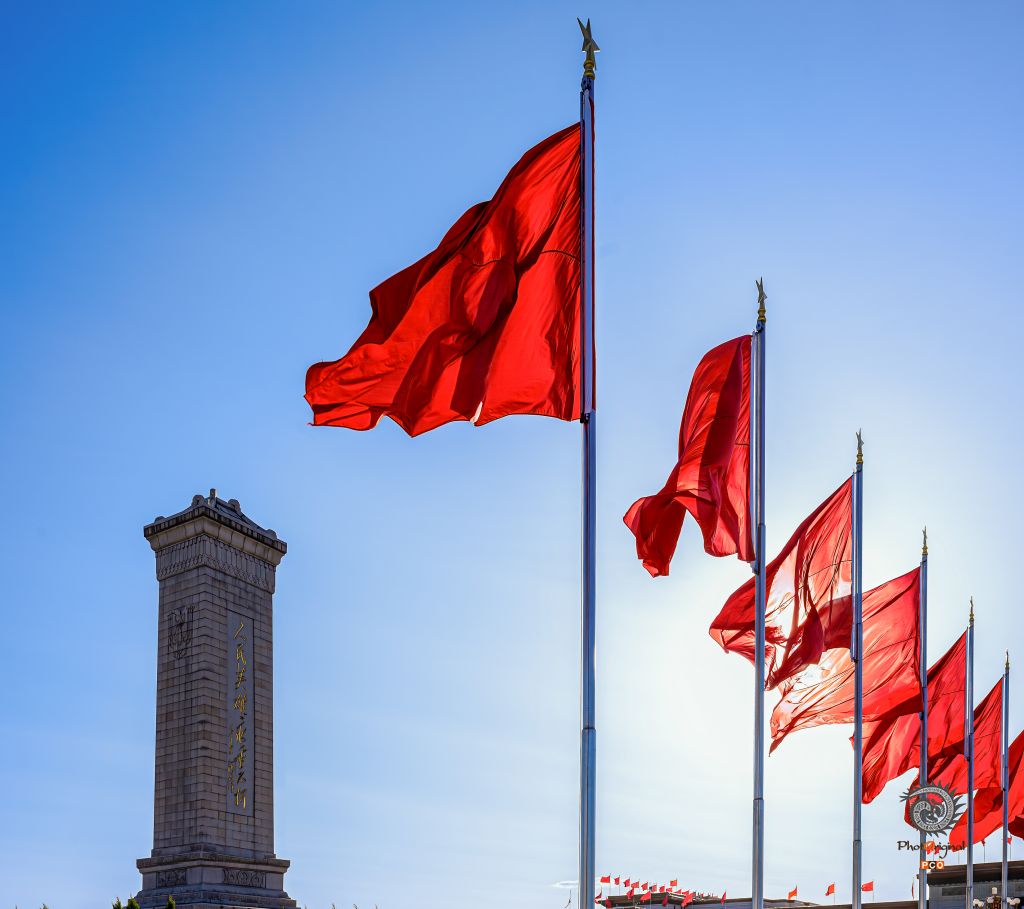 五星红旗迎风飘扬,是先烈们的鮮血染红了她。