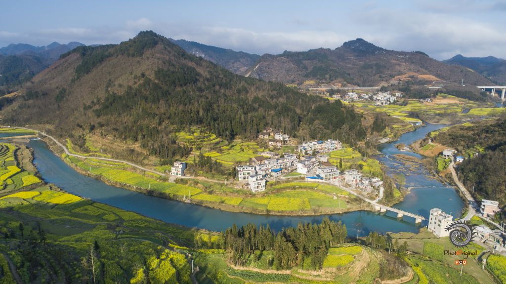 小河流进村落边