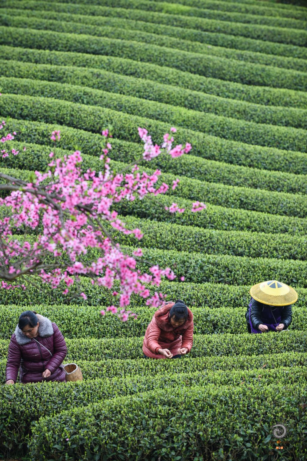 2019年3月31日,采茶工在贵州省余庆县松烟镇一处茶场采摘“明前茶”。 随着气温回升,贵州省遵义市余庆县各大茶场迎来“明前茶”采摘高峰。采茶工人忙着采摘、制茶,供应市场。