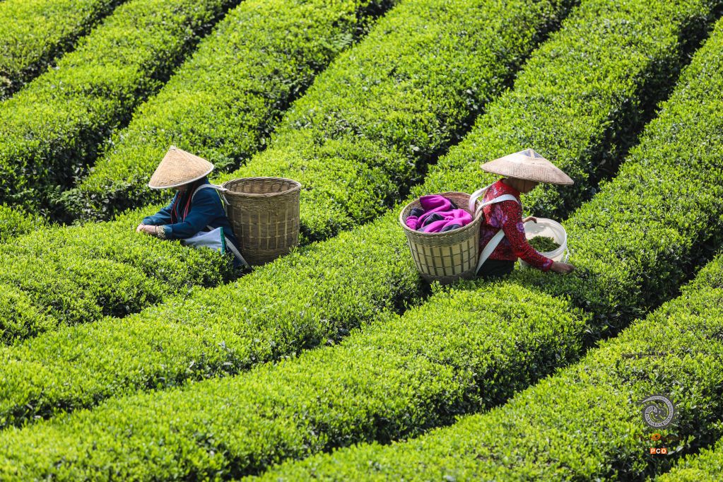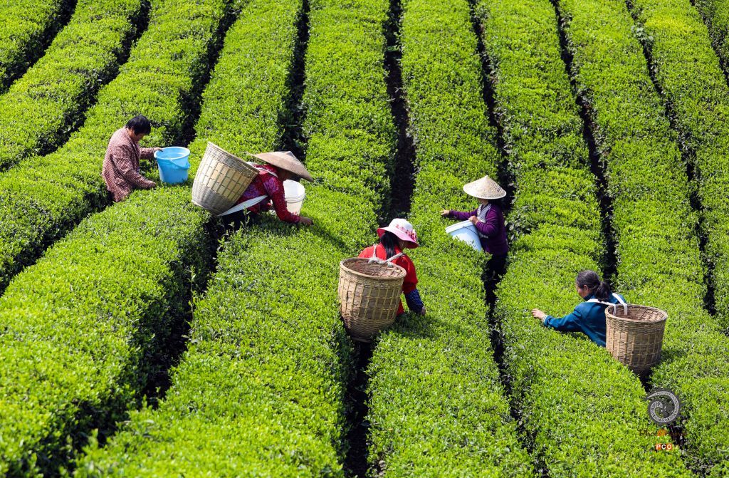 这是2019年4月9日在贵州省铜仁市玉屏侗族自治县亚鱼乡茶园拍摄的春日采茶图。