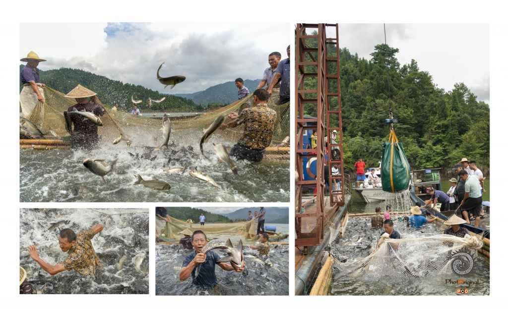 《年年有鱼》拍摄于2019年年8月4日,地点:锦屏县三板溪库区。三板溪库区因电站蓄水而形成2万余亩的湖区,因此也成为当地网箱养殖基地,2018年当地政府为了保护生态环境,拆除了所有网箱,改为大水面养殖。图为大水面拉网捕捞场景,实现了网箱养殖向大水面养殖的转变。