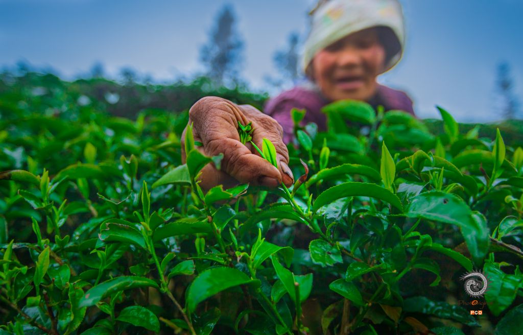 2019年3月27日拍于丹寨县马寨扶贫茶园。云雾迷漫的马寨古茶园里,一位苗家婆婆正在采摘古茶茶尖嫩芽。