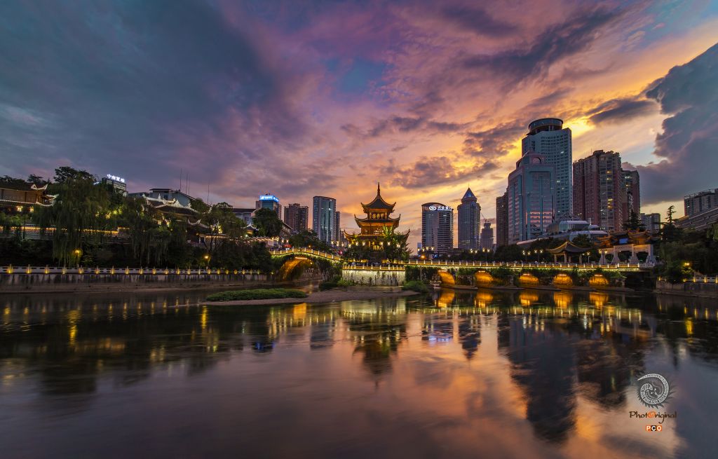 五彩云霞中的甲秀楼。2019.08.01拍摄于贵阳甲秀楼