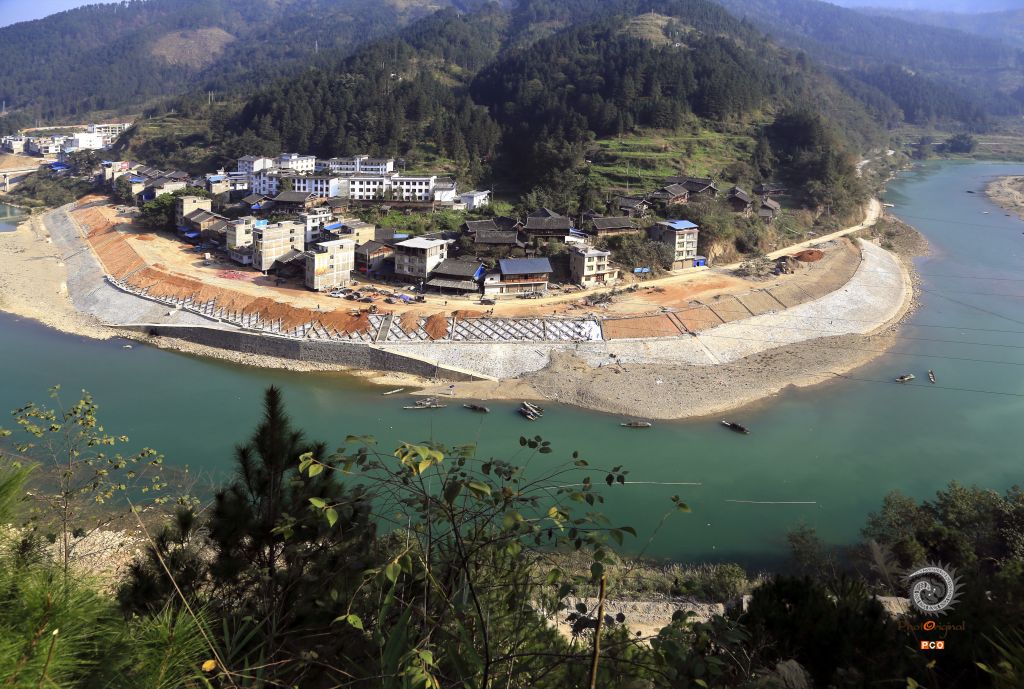 都柳江两岸的榕江县定威乡河堤建设场面。