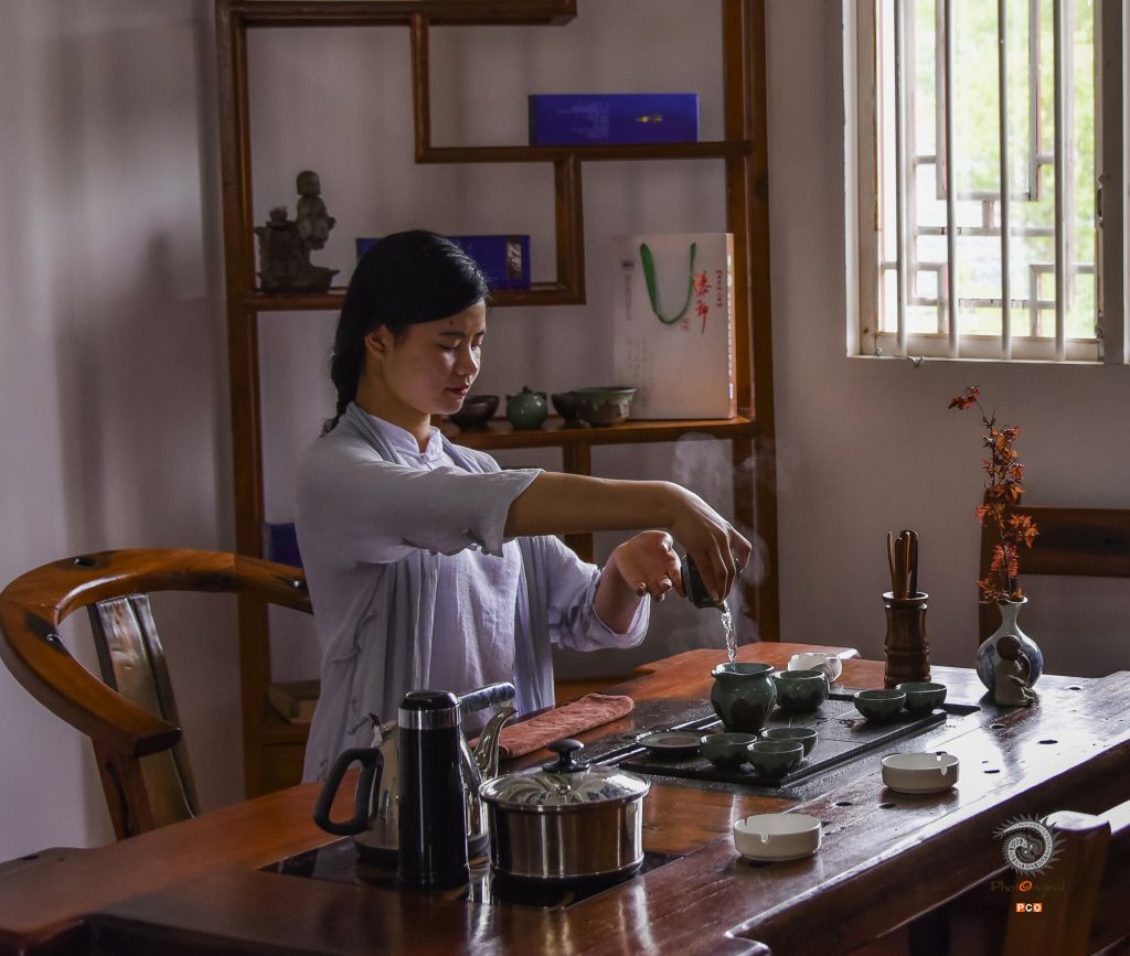 拍摄时间:2018.4.28日,拍摄地点:安顺市紫云县鸡场茶场。 茶场工作人在作茶艺表演和介绍。