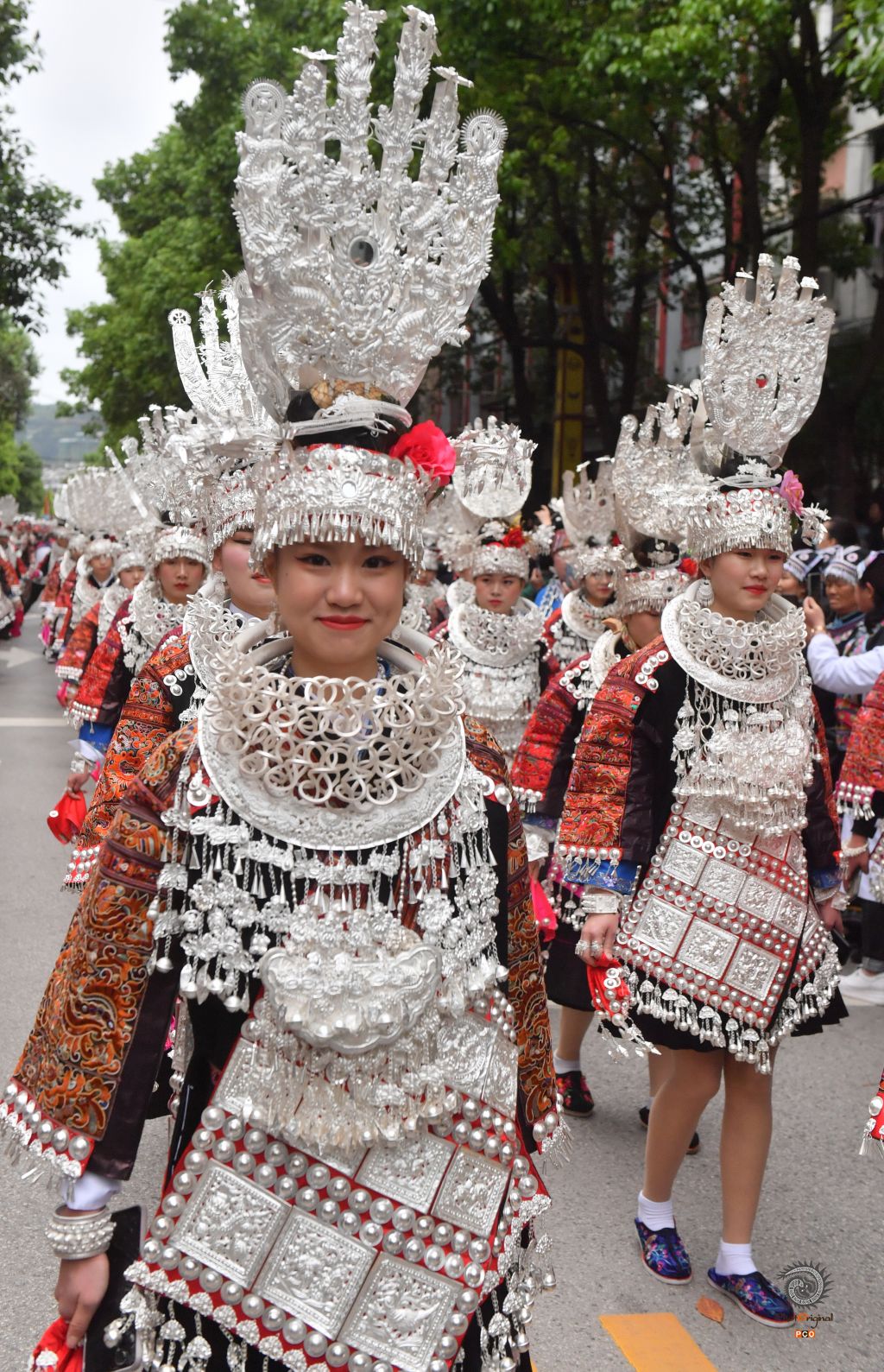 穿苗绣盛装巡游的苗族女青年