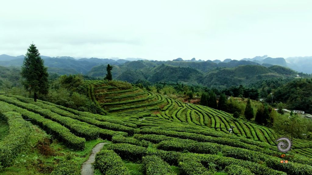 航拍海拔2300米的贵州雾翠茗香茶园