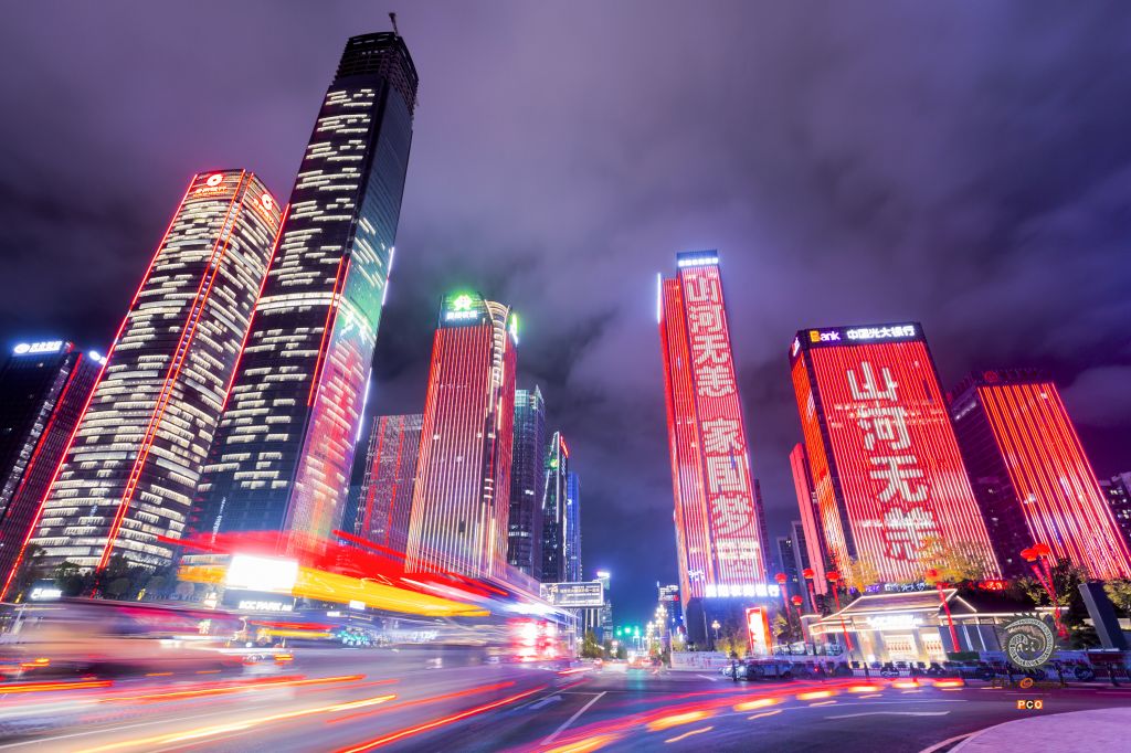 9月28日--10月8日期间,贵阳观山湖区金融城、花果园商业圈群楼晚间亮屏展示灯光秀,变换打出:“美丽中国,多彩贵州”、“山河无恙,家园梦圆”、“国庆逢佳节,中秋共华诞”、“千家万户团圆灯”、“天涯赤子心明月心”等字样标语,街头插满五星红旗,中国红璀璨亮相,献礼新中国成立71周年。