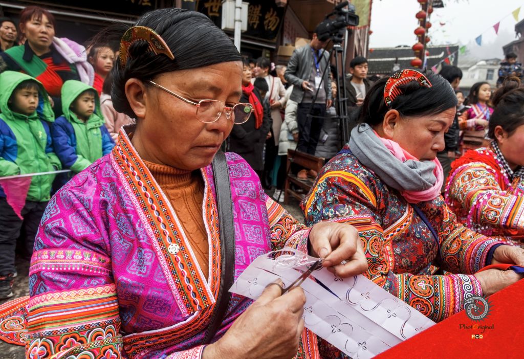 苗族妇女展示精彩的刺绣环节--做花样