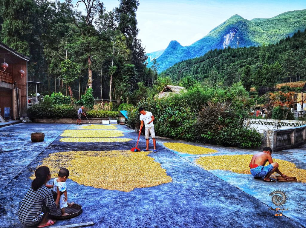 2020年8月拍摄于贵州江口县中国第一土家村—云舍村。金秋晒场,丰收景象。