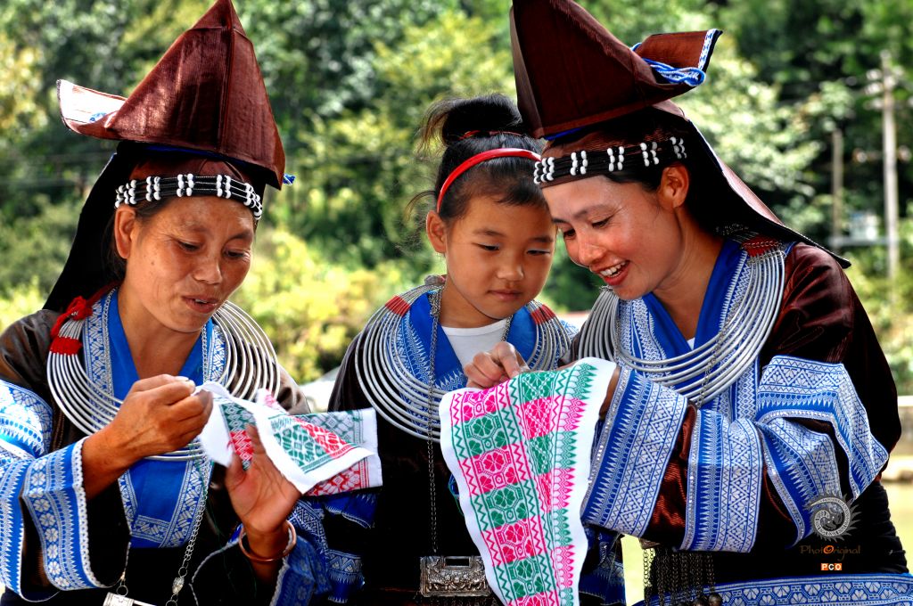 儿童好奇的学习传承传统苗绣