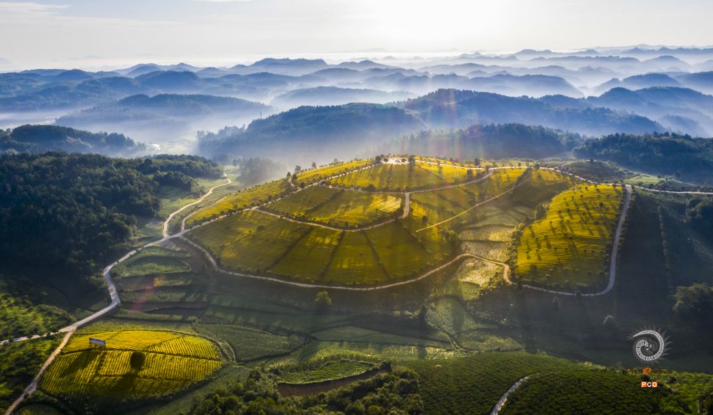 作品摄于2021年7月贵州省瓮安县建中镇黄红缨茶园。清晨的阳光,洒在金色的茶园上,美丽如画。
