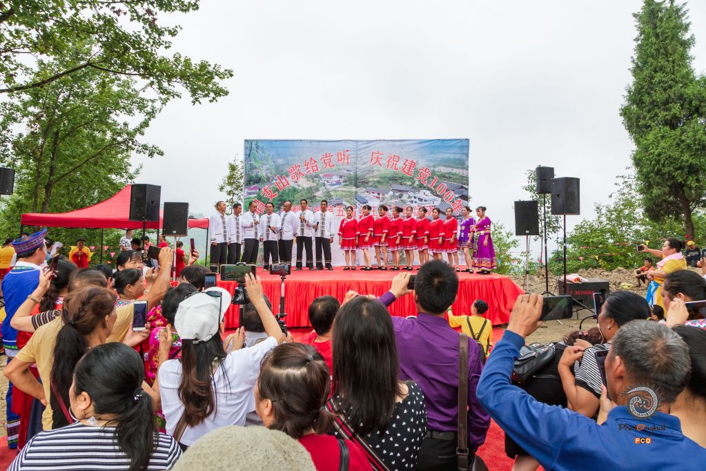 赶坳对歌是侗族青年男女对歌传情的传统节日。玉屏侗族自治县铁家溪村禾梨坳今年赶坳的主题是“唱支山歌给党听 庆祝建党100周年”,歌颂中国共产党的丰功伟绩、歌唱侗家人民的美好幸福生活。