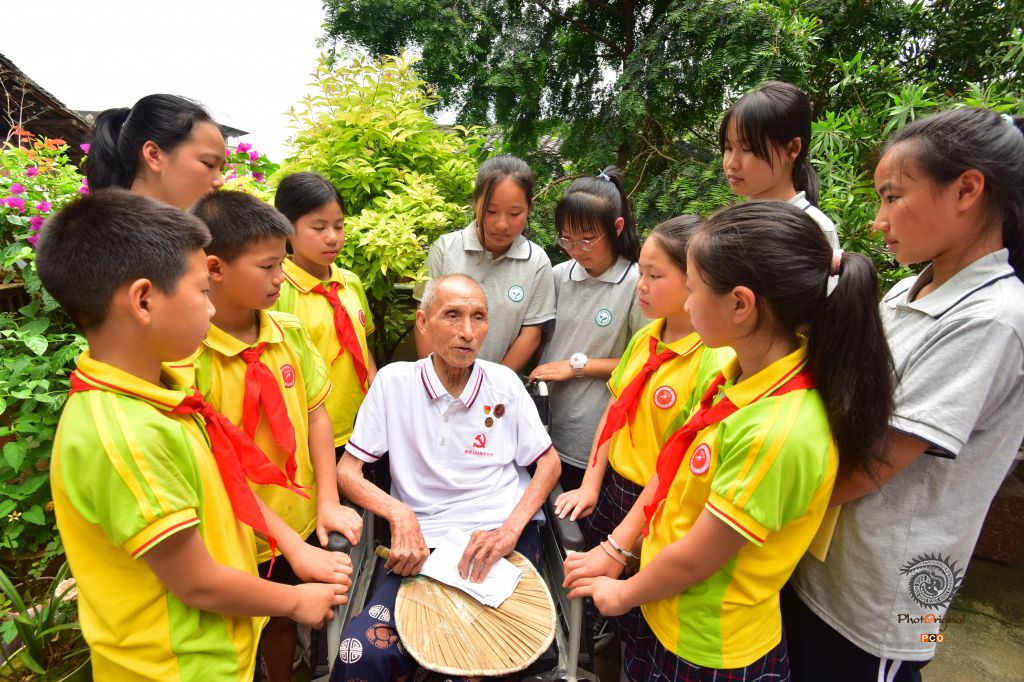 2021年6月24日,贵州省黔东南州锦屏县新化乡机关党员干部、中学共青团员代表、小学少先队员代表来到新化所村抗美援朝老党员闵跃武的家里,聆听抗美朝故事。 连日来,锦屏县组织开展“学党史上党课 庆祝建党百年”活动,通过重温入党誓词、学党史上党课、聆听红色故事等形式,表达对党的无限忠诚和热爱,向党的100岁生日献礼。