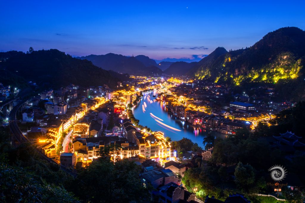 中国历史文化名城AAAAA级景区,繁忙的㵲阳河上游船川流不息,名城璀璨的灯光更加迷人。