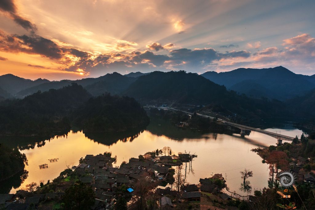 2016年1月3日拍摄于贵州省台江县革一乡排生村。排生苗寨位于岩寨电站水库上游的岛上,宛如浮在水上的桃花源。