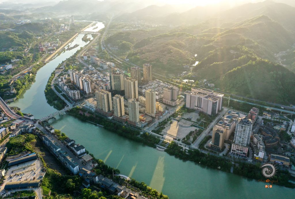 这是2021年4月29日航拍的流经贵州省铜仁市玉屏侗族自治县县城的舞阳河。