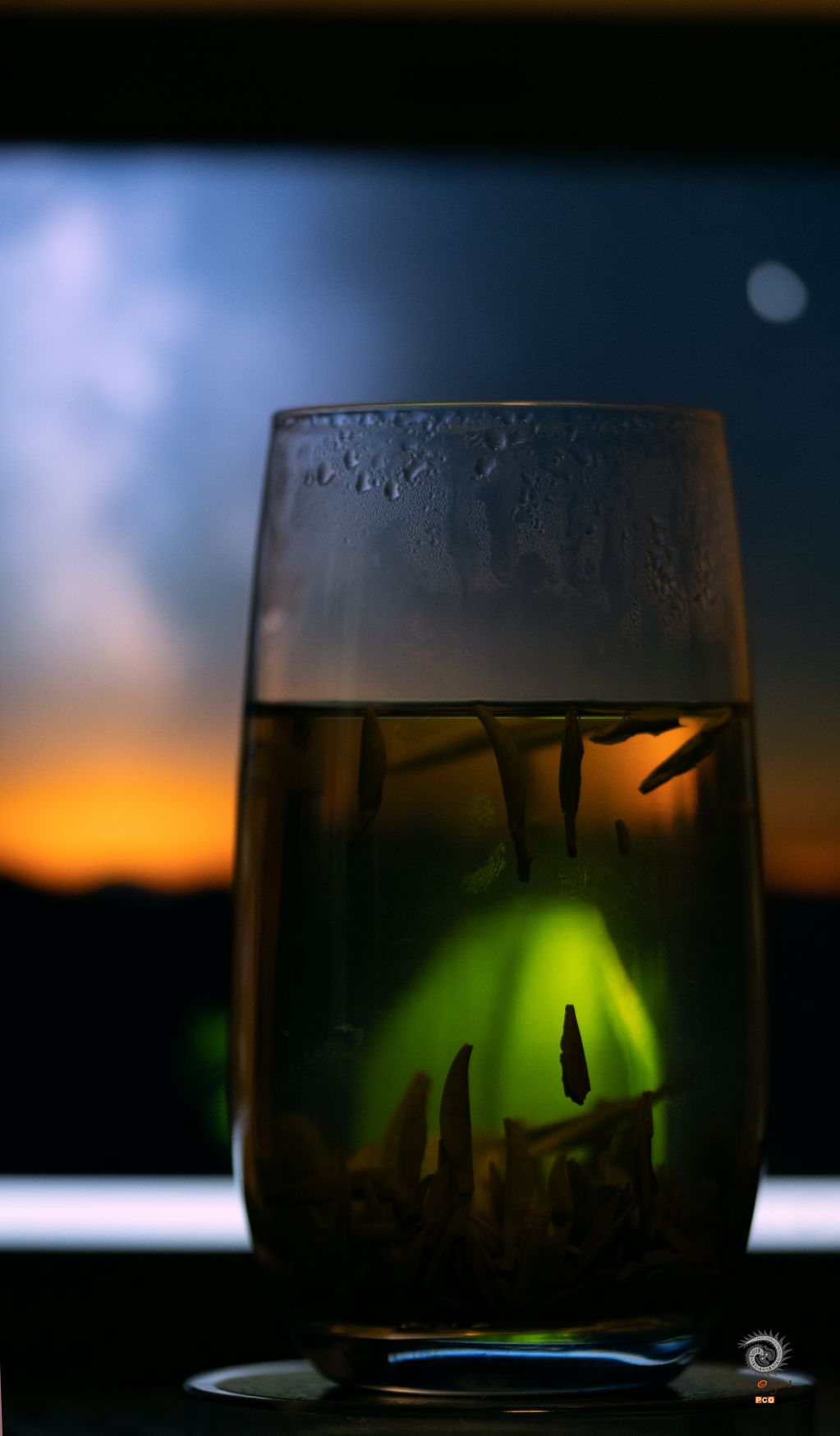 电脑前,工作间隙品一口茶,工作也变得惬意了。