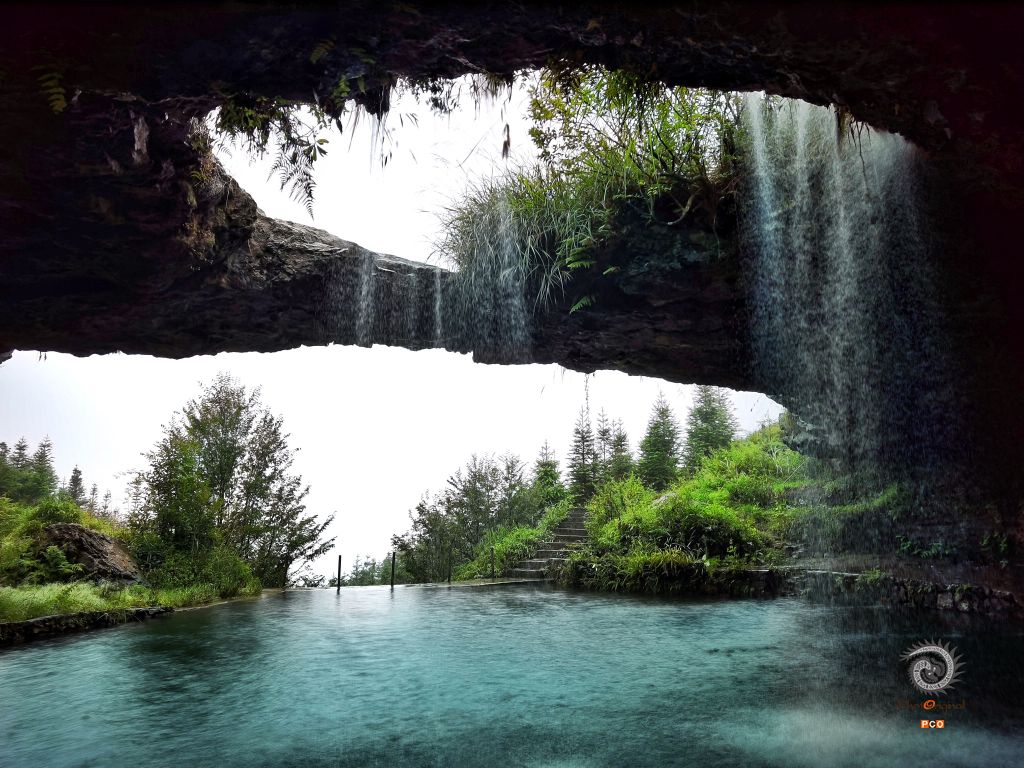 天然形成的石桥与天眼浑然一体,溪流从天眼倾泻而下,好一幅大自然鬼斧神工的美丽图画。