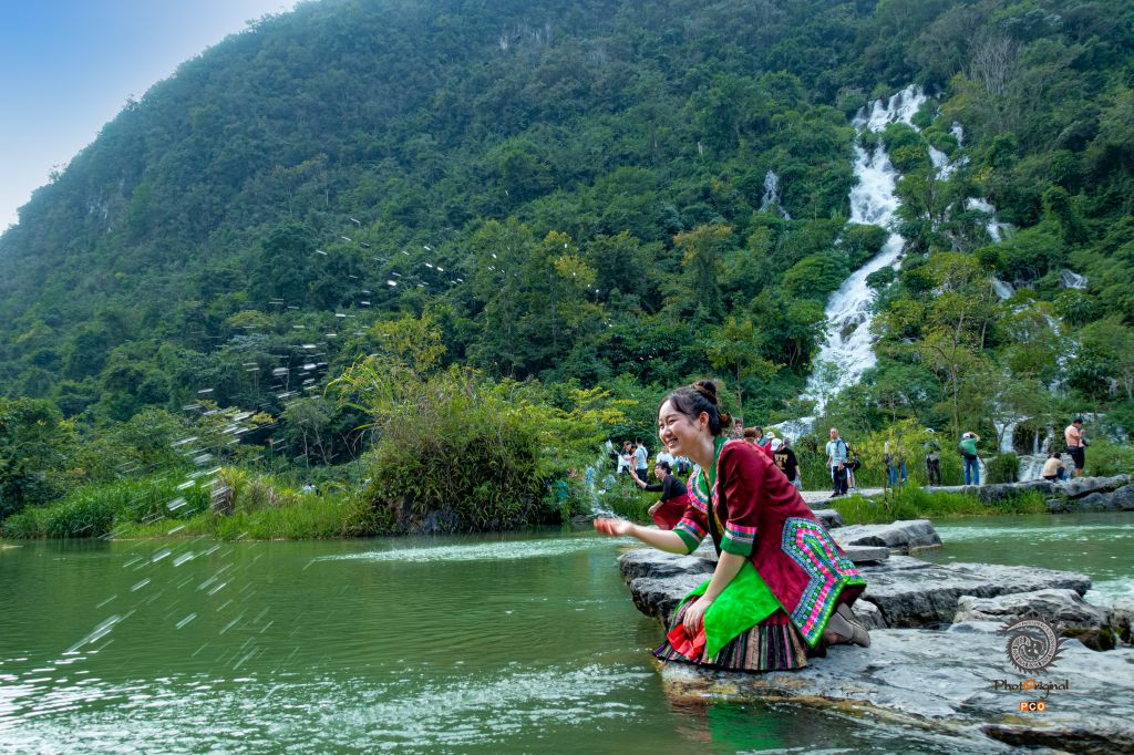 绿水青山就是金山银山,姑娘撩起溪中的水,表达喜悦的心情。