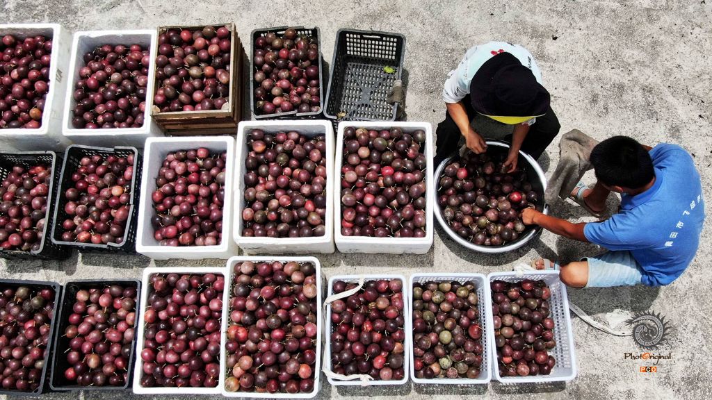2020年8月7日,贵州省锦屏县新化乡密寨村村民在分选百香果。