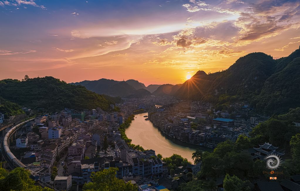 镇远古城的黄昏格外美丽。鳞次栉比的楼房、街道,以及静静的舞阳河,都被太阳的余辉涂上了一层淡淡的金黄色,举目远眺让人心旷神怡。