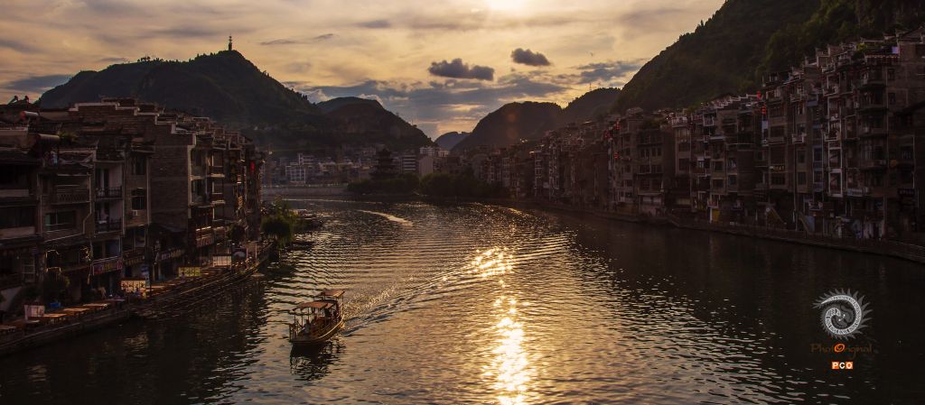 夕阳、古镇、水上人家。2019.08.03拍摄于贵州省贵州省黔东南苗族侗族自治州