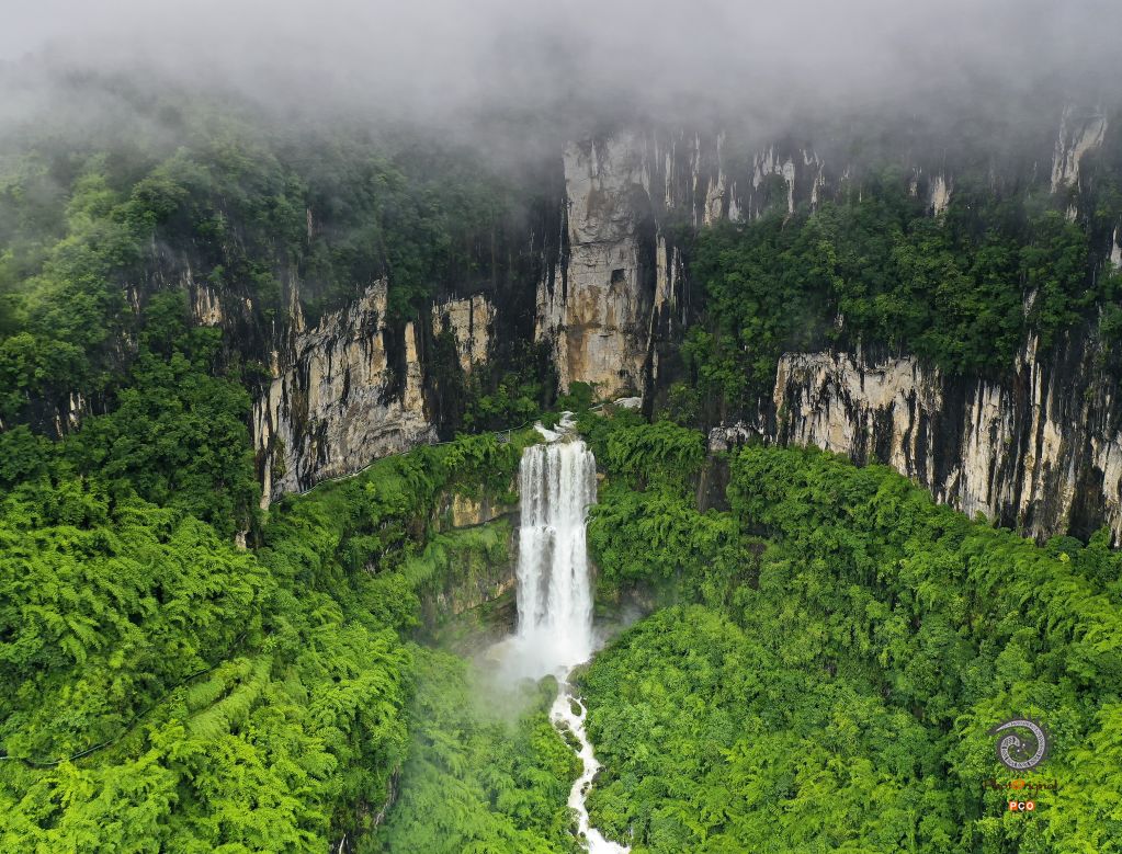 在铜仁市碧江区的云场坪镇路腊村高山的半山腰有一个绝壁,绝壁中央有一个高约五十米,宽约五米的山洞(叫黄腊洞),山洞里有一条阴河,阴河里的水至里往外流淌,形成了瀑流,格外壮观。
