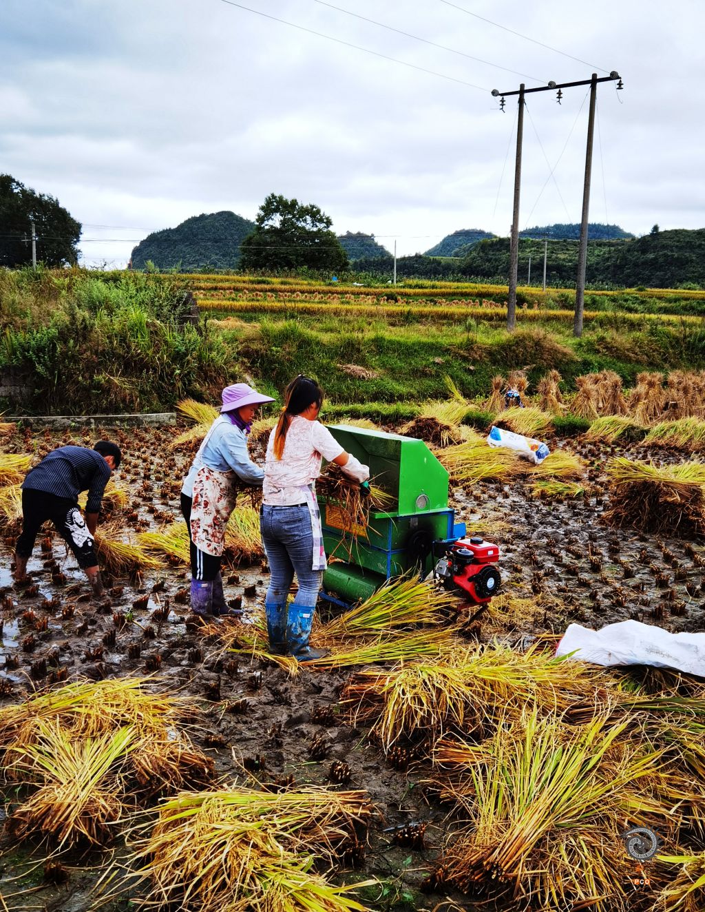 2020年9月拍摄于花溪区高坡乡石门村。与时俱进,农民秋收用上了新式电动农具。