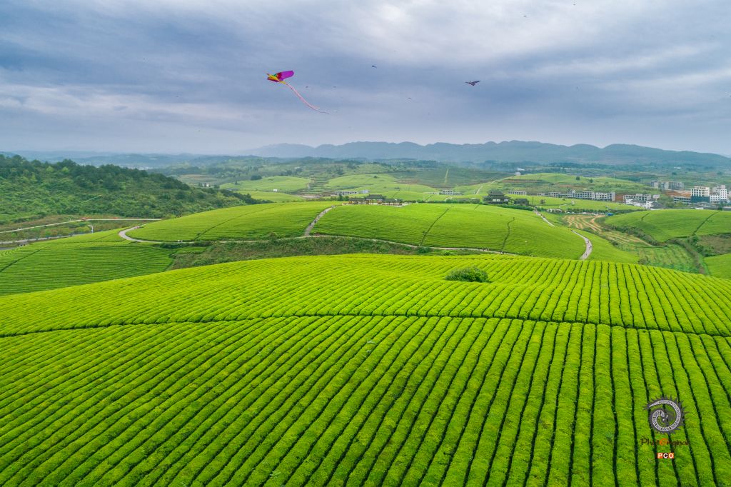 松桃县苗王城茶园,地处贵州省铜仁市松桃苗族自治县正大乡苗王城景区内。每当天气晴朗,茶园里游客如织,风筝漫天飞舞,好一幅精美的绿色画卷。