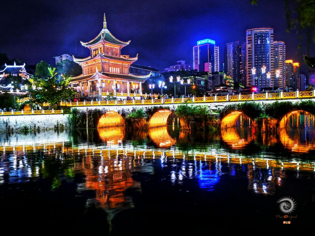 分别拍摄于2019年4月、2021年2月,贵阳市地标性建筑与夜幕水色融为一体,靓丽动人。