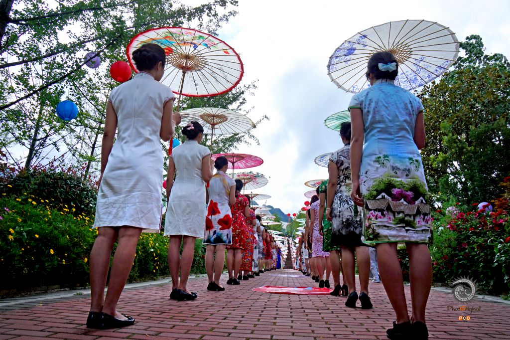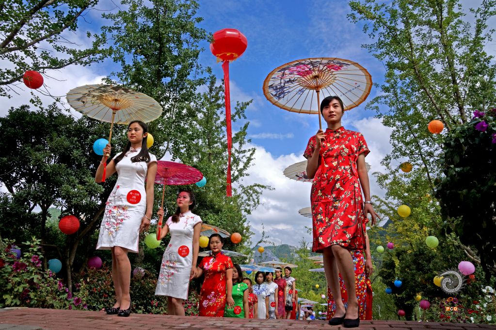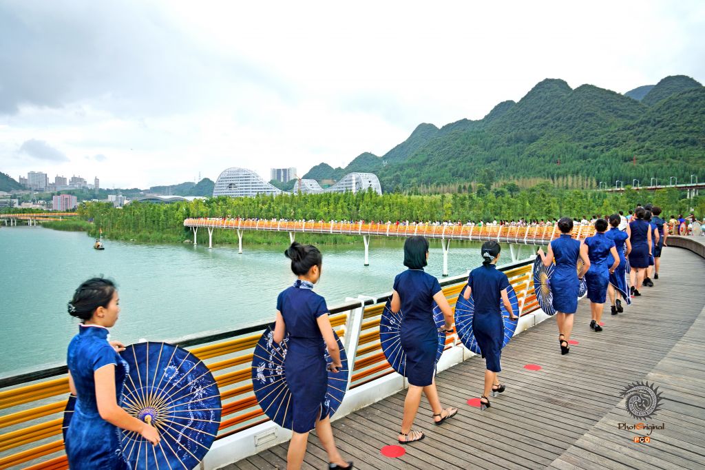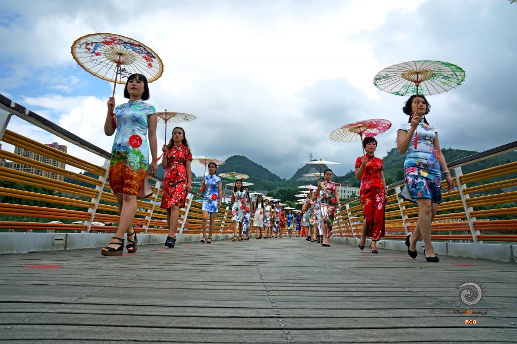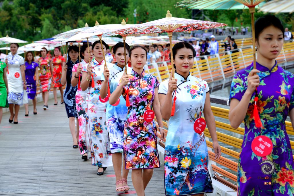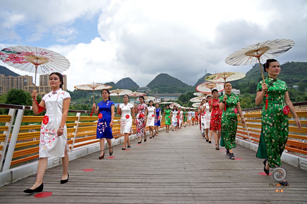 2016年 7月29日下午,中国凉都旗袍文化艺术节,由中国旗袍文化节特邀代表队、六盘水本地代表队组成的3011名佳丽,身着各色旗袍、手持彩绘油纸伞,迈着轻盈的步伐,缓缓行走在明湖国家湿地公园的彩虹飘带桥上,场面尤为壮观。