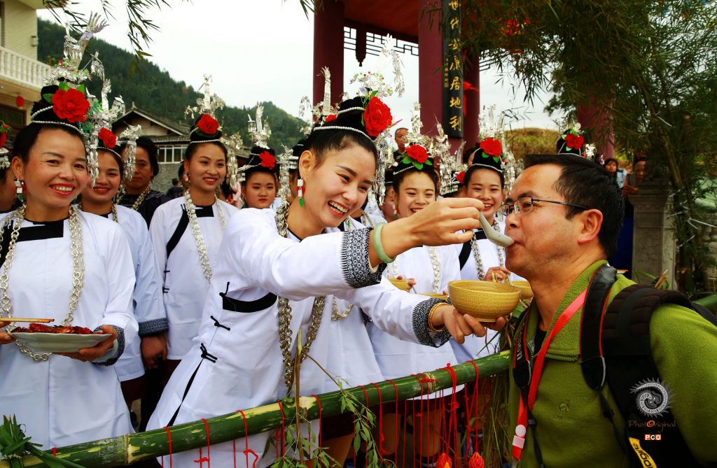 2018年11月11日在榕江县忠诚镇安乐村拍摄的民俗活动,拦门酒。