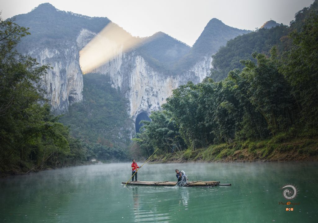 拍摄日期:2020.11.11日,拍摄地点:贵州省安顺市紫云县格凸河景区。 紫云县格凸河属于国家4A级旅游景区,这里风光秀丽,宛如世外桃园。每当旭日东升,时常出现万丈光芒穿洞而过,照在格凸河上,被当地人称之为天地神光,十分奇特罕见。