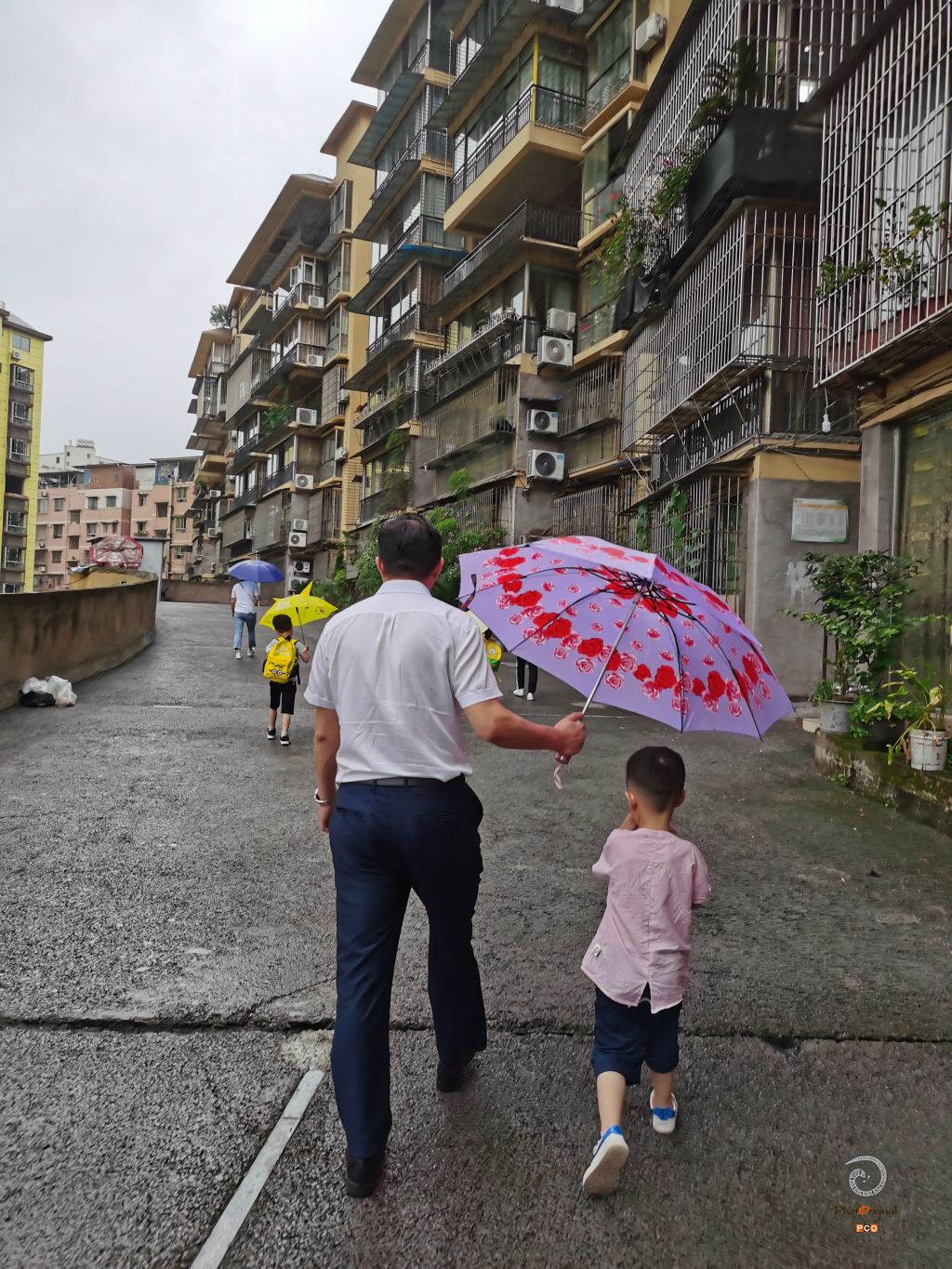 一个简单的撑伞举动,看出了一个父亲对儿子的爱。
