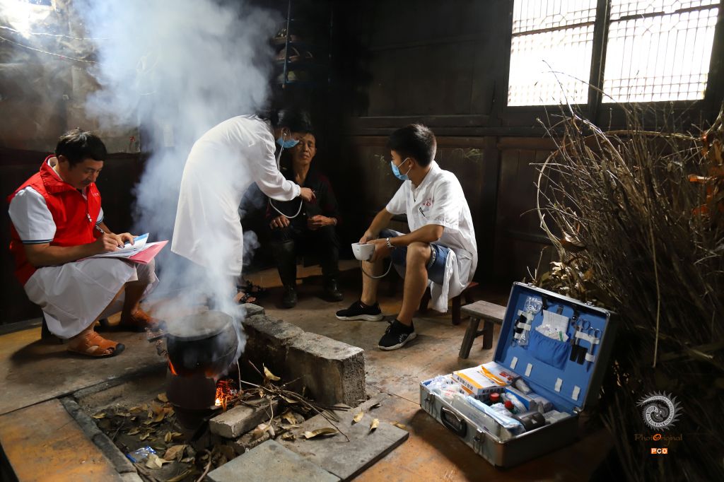 玉屏侗乡山寨,医疗小分队不辞辛劳,爬山涉水,来到村民家中,为村民诊疗。