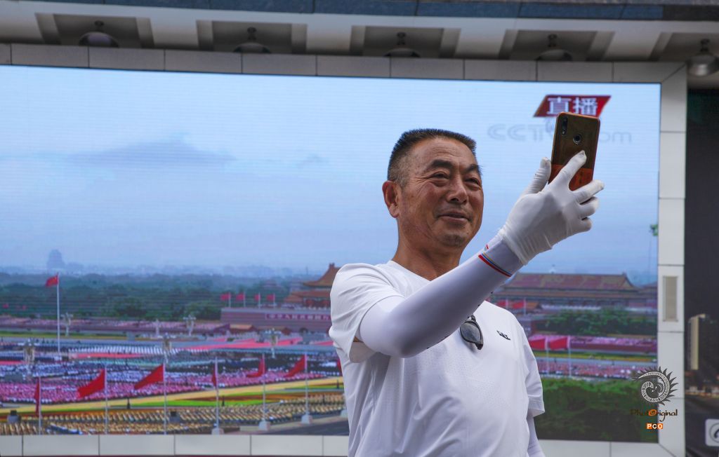 2021年7月1日在红果街上大屏幕前看直播发抖音的治全