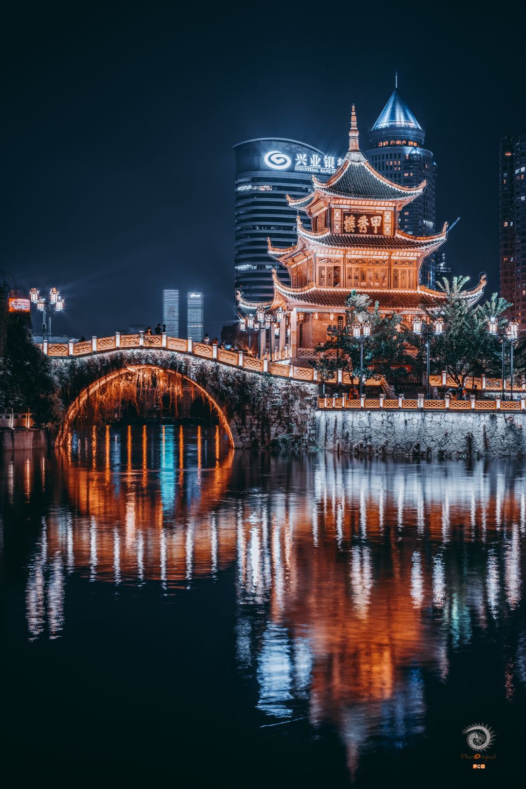 贯穿贵阳市城南的南明河,河水清澈,两岸景观靓丽,到了夜晚,华灯初上,流光溢彩,成了市民、游客休闲观光娱乐的好去处