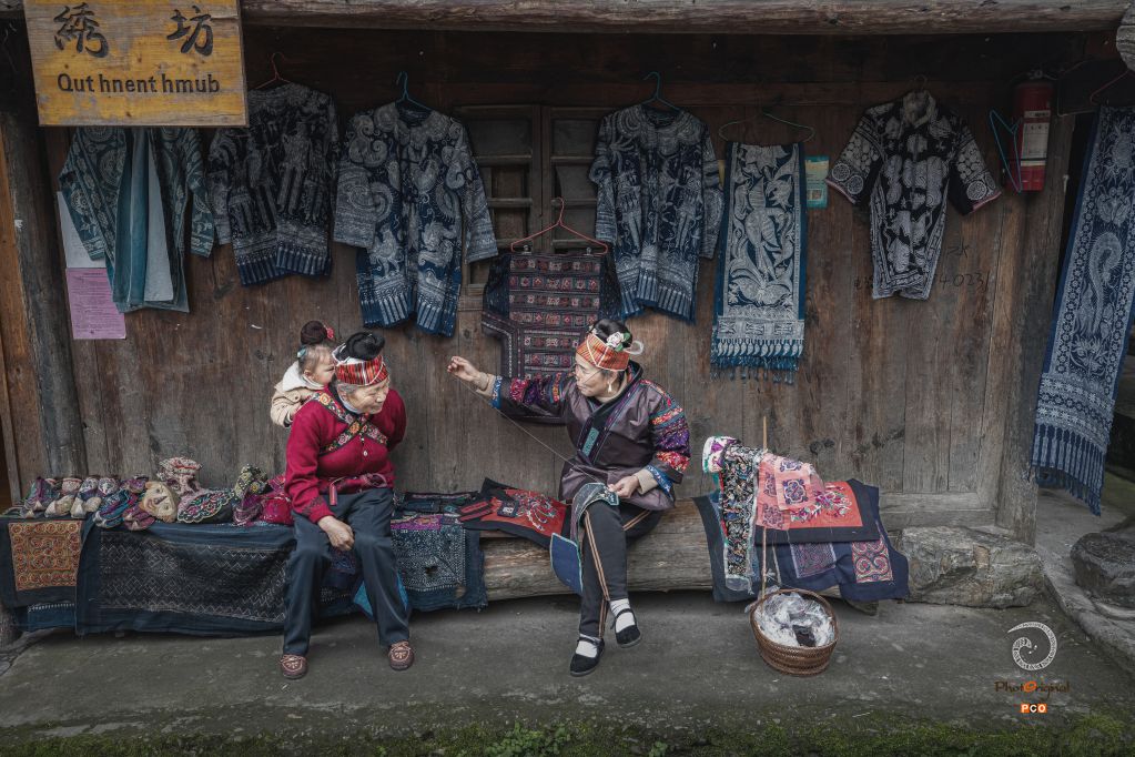 在台江长滩村,一对老姐妹在秀坊一边唠嗑一边苗绣,两不耽误。