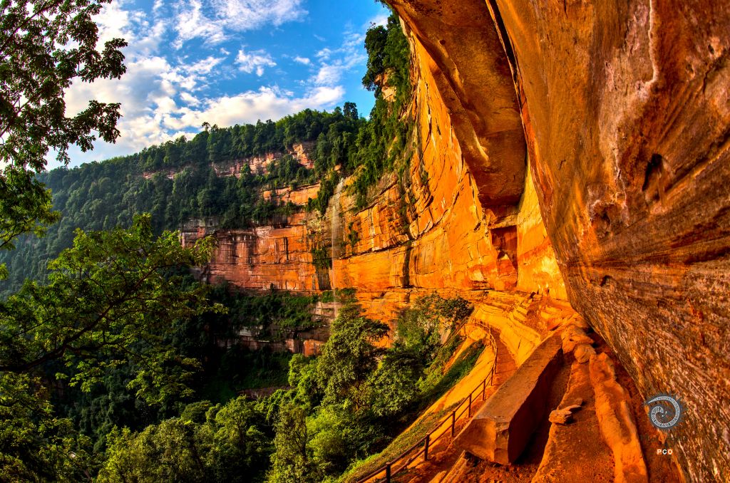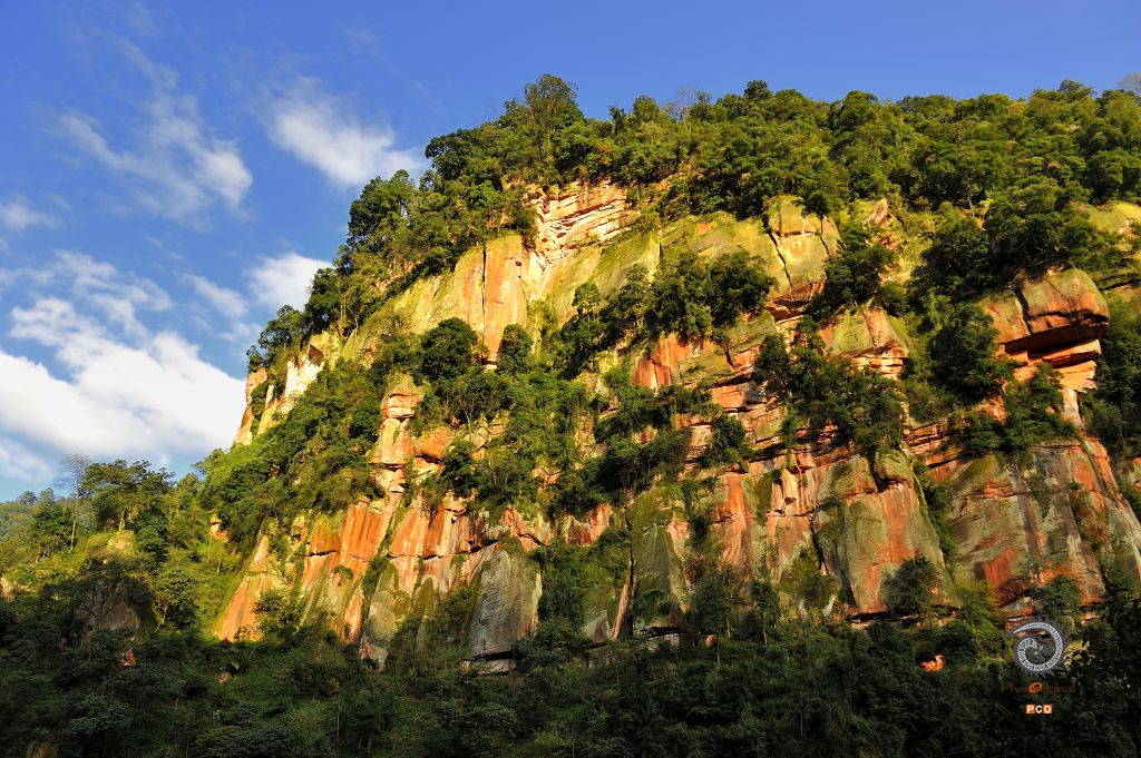 "赤水丹霞"是罕见的发育于亚热带巨型红层盆地南缘的高原-峡谷型和山岭型丹霞景观,因流水的快速切割而形成顶平、身陡,麓缓的方山、石墙、石峰、石柱等奇险的丹崖赤壁地貌,是青年早期阶段丹霞地貌的典型代表。