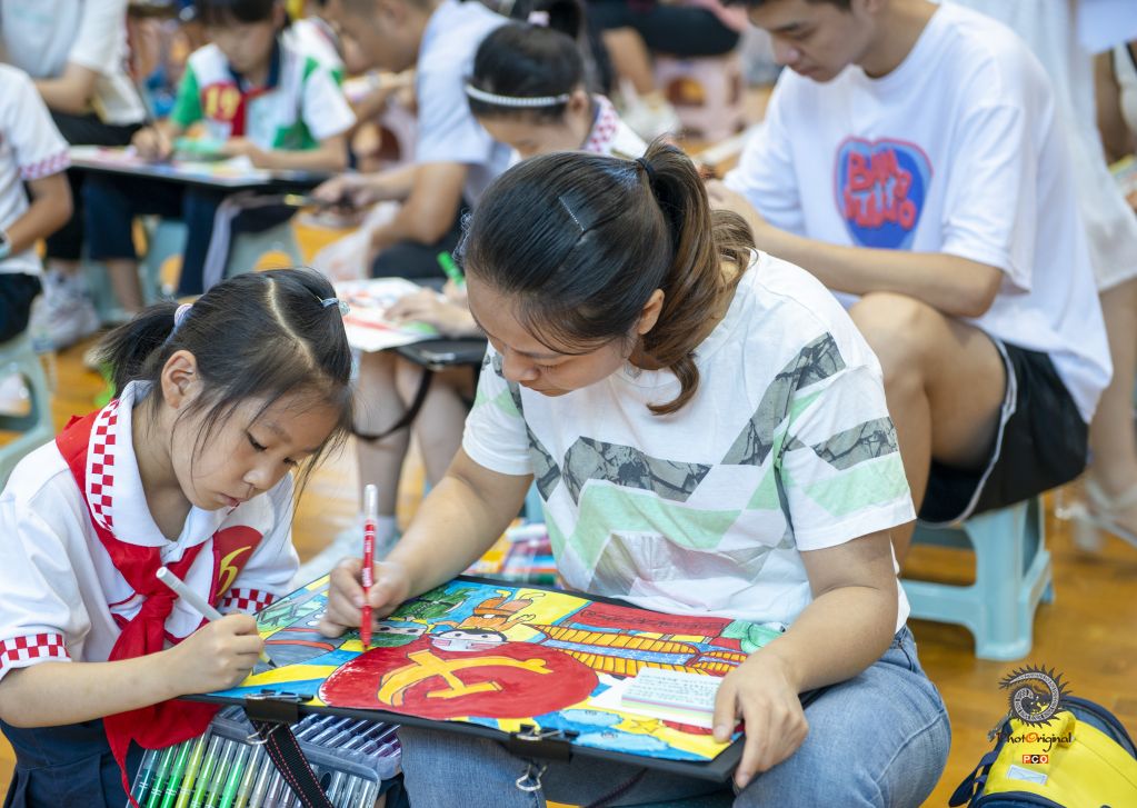 建党100年庆祝活动中,贵州赤水市妇联、教育局等单位组织开展“”百幅绘画献给党“”亲子活动,图为比赛现场。