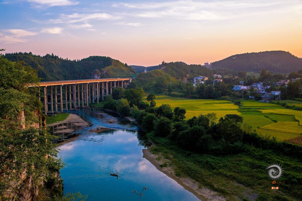 金色的田野旁,碧绿的舞阳河缓缓流淌,一叶小舟在河面荡漾,一幅梦里水乡山水风光让人心旷神怡。