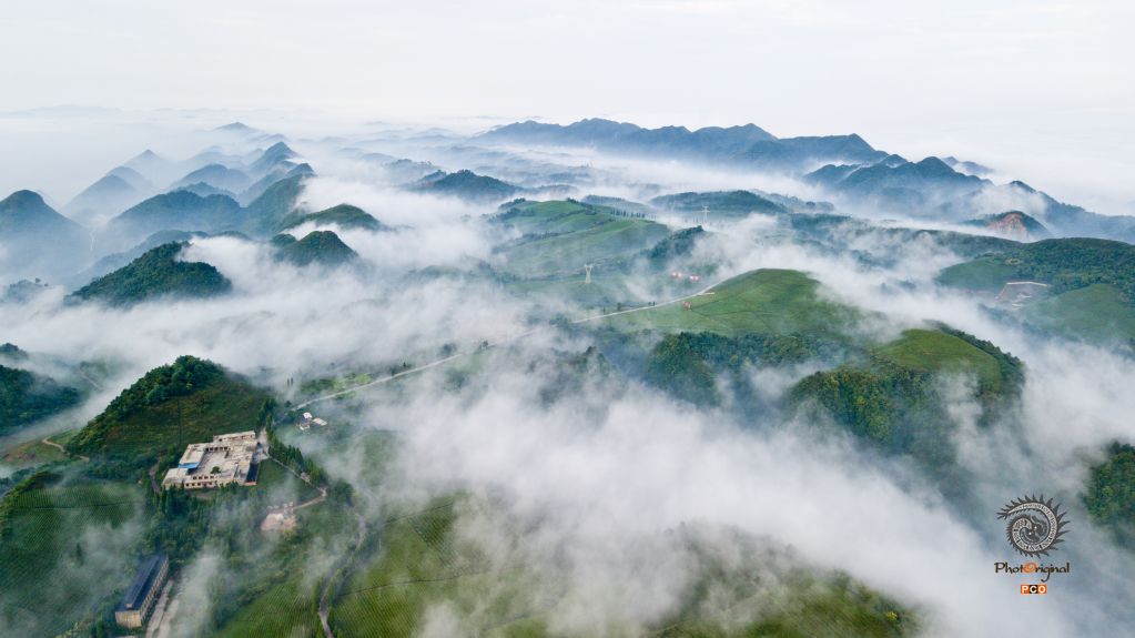 瓮安县青山茶场航拍,云雾缭绕,宛如人间仙境一般。