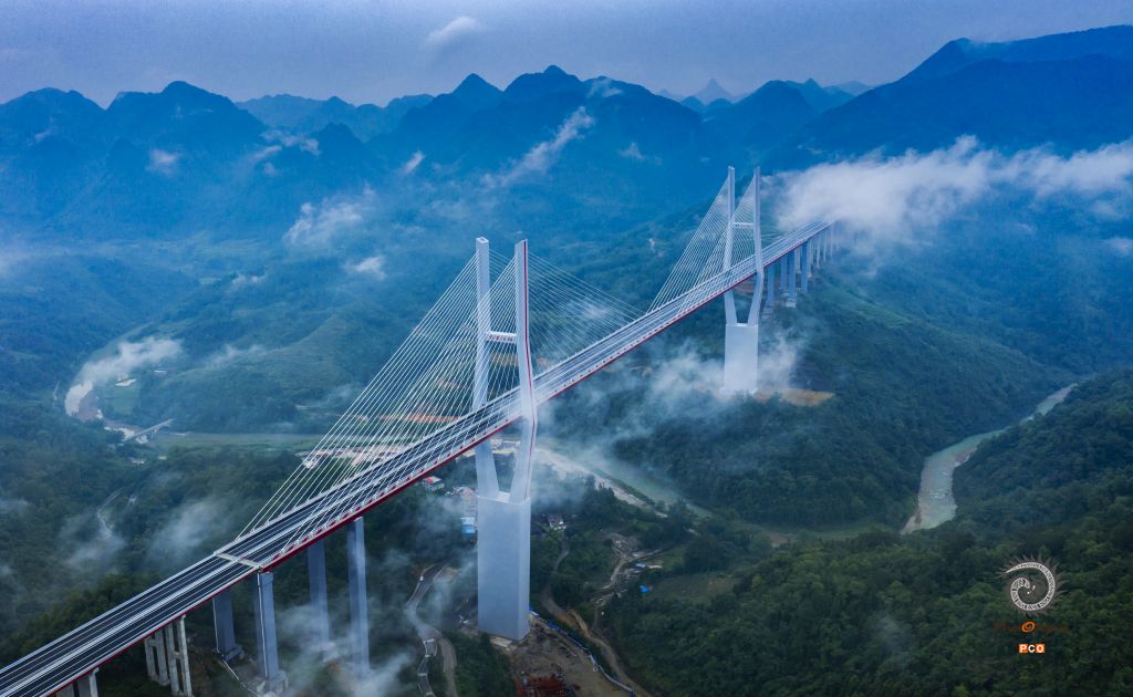 云雾大桥位于贵州贵定县境内,全长1720米。作为贵州公路史上投资最大的项目都安高速的全线控制性工程,大桥主塔设计为折H型钢筋混凝土结构,设计结构高度分别为273米和300米,目前在折“H”型索塔高度中居世界第一。