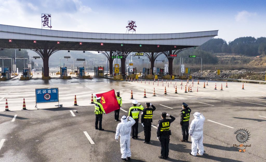 作品摄于2020年初,突如其来的新冠肺炎疫情打乱了人民原来的平静生活,一场防控疫情的人民战争轰然打响。瓮安公安闻令而动,全警在岗、冲锋在前,让党旗在战“疫”一线高高飘扬,让警徽在守护万家平安的主战场上熠熠闪光。