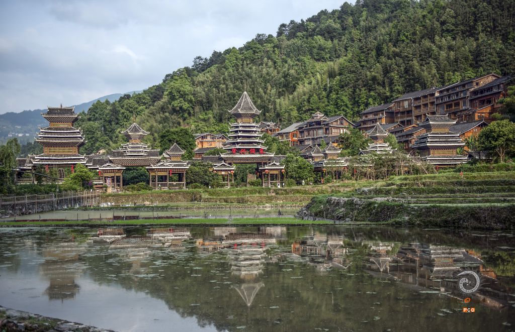 (拍摄时间:2021.5.11地点:贵州省黎平县;付俊珂,13838999595);肇兴侗寨一个可与丽江相互媲美的侗族村寨,素有"侗乡第一寨"之美誉,是“中国最美的六大乡村古镇”之一。炎炎夏日,清爽怡人,魅力无穷的侗寨镶嵌在群山环抱之中,颇似人间蓬莱仙境。